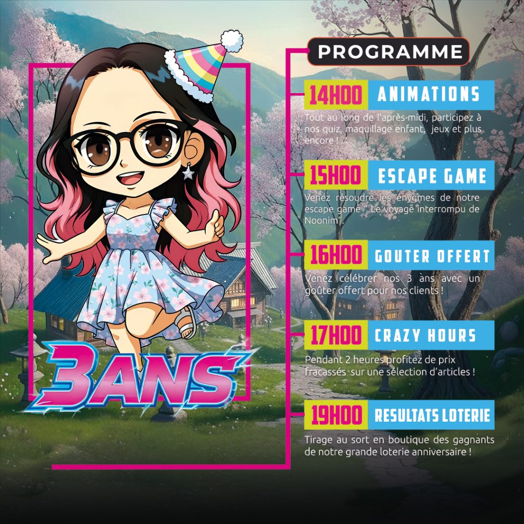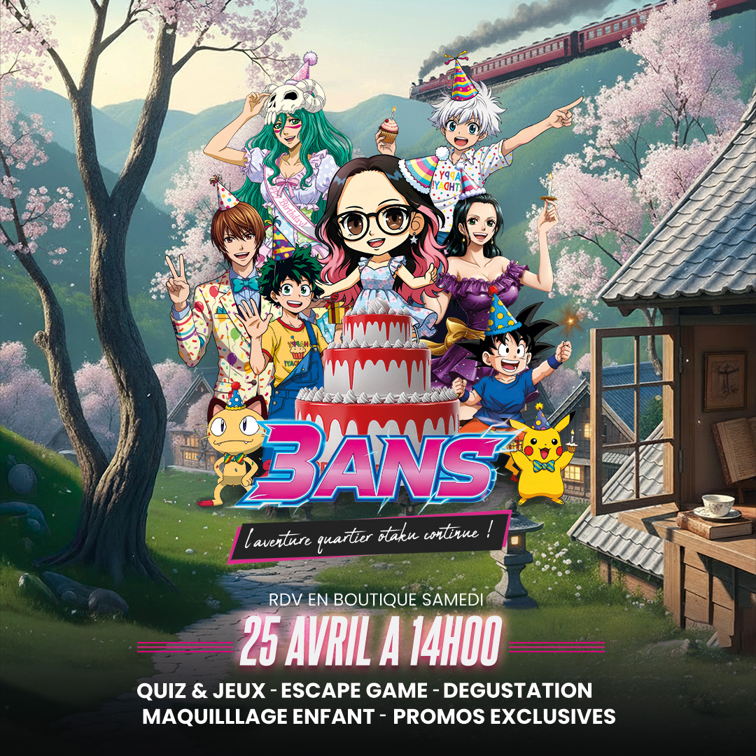 Depuis le premier jour, vous êtes là : à découvrir les dernières sorties, à débattre sur vos mangas préférés, à chiller dans la boutique, à participer aux événements… et c’est exactement pour ça qu’on avait envie de marquer le coup avec une journée vraiment spéciale. Pas juste un anniversaire… mais un moment à vivre ensemble 🙌